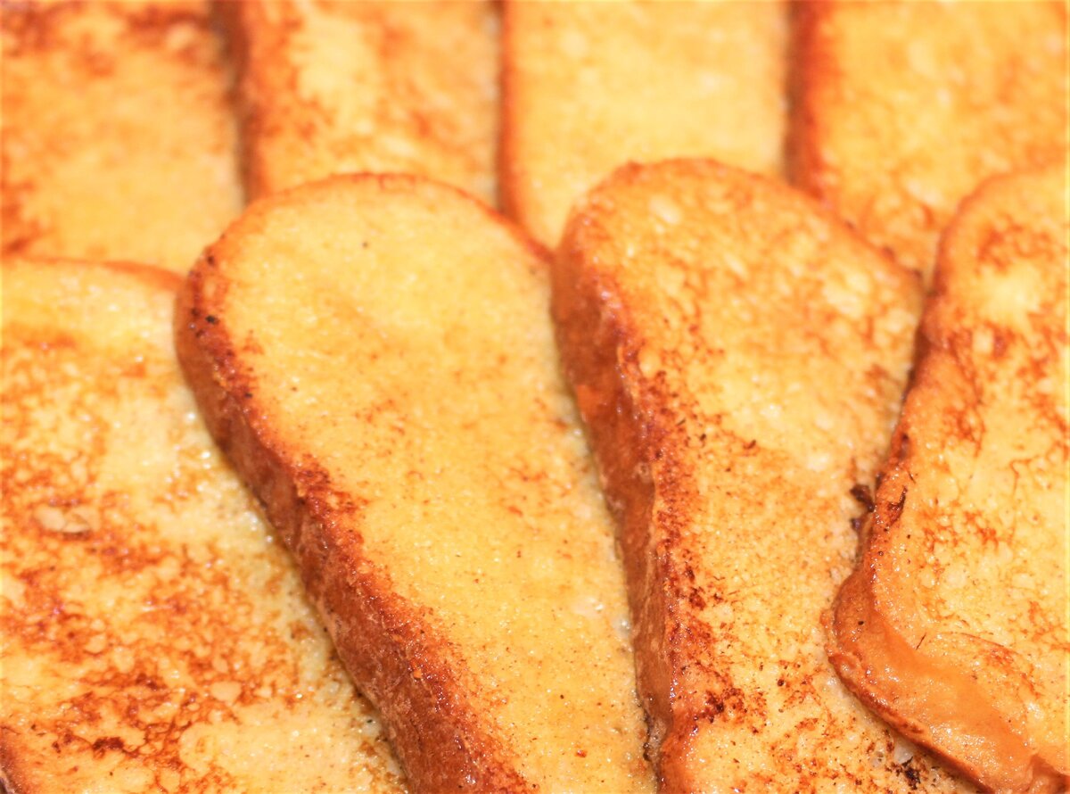 Залежался хлеб и жалко его выкидывать? Родные просят что-нибудь вкусненькое? Надоело варить кашу и возиться с сырниками? Нет времени жарить блинчики и оладьи? Тогда вот они - французские тосты! Быстрее и вкуснее не придумаешь! Справится даже ребенок. Это тот случай, когда читать рецепт дольше, чем по нему готовить. Ингредиенты Важно, чтобы хлеб был именно немного подсушенный, иначе он не сможет нормально впитать яично-молочную смесь. Если все-таки тостов хочется прямо сейчас, но дома только свежий хлеб, можно подсушить его в духовке при температуре 100 градусов около 20 минут. Приготовление 1. Взбиваем яйца с щепоткой соли венчиком в миске 2. Добавляем сахар, молоко, корицу, мускатный орех. Все взбиваем венчиком еще раз. 3. Обмакиваем кусочки хлеба в смеси с двух сторон. Тут главное соблюсти баланс, чтобы кусочки пропитались внутри, но остались достаточно крепкими, чтобы не развалиться. 4. Аккуратно вилочкой достаем кусочки хлеба из миски, даем стечь лишней смеси и обжариваем с обеих