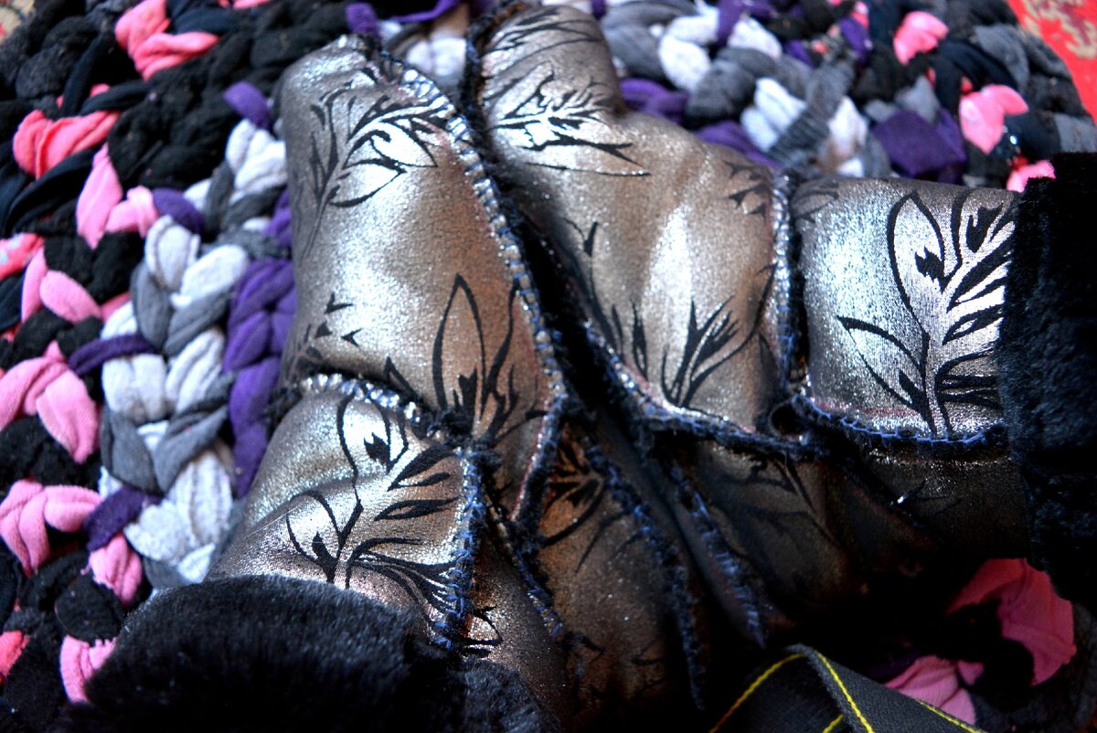 В деревенском доме в предзимье становится прохладно, особенно стынут ноги по утрам - печка за ночь остывает. На этот случай я сшила себе и дочке по паре тепленьких сапожек-угг из искусственной дубленки. Выкройка дана на размер ноги 38 с учетом плотного меха, но если есть необходимость уменьшить или увеличить, то советую после самостоятельной корректировки выкройки сделать пробный сапожек из ненужной ткани - пилотный образец)) Выкройка под статьей в галерее! Итак, раскрой в один слой, я обводила детали мягким акварельным карандашом. Припуски на швы 0,5-0,7 см. После вырезания всех деталей я сначала вручную обобрала мех по срезам, а потом острыми ножницами сняла мех по краям примерно на ширину 1 см. Получились выстриженные кромки, благодаря которым слой меха при складывании не будет смещаться, да и толщина станет поменьше. Сначала я планировала сшить детали на швейной машине, но по замшевой поверхности металлическая лапка отказалась передвигаться, а специальной пластиковой лапки для кож