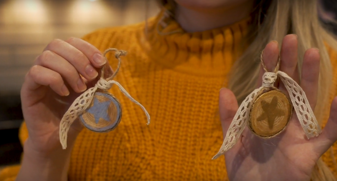Как сделать деревянные игрушки к Новому Году? Вот простой способ сделать несколько новогодних игрушек из срезов. Для этого вам понадобится: И желание сделать что-то своими руками:) Для начала возьмём срез дерева, кисточку и акриловую краску. Например, золотого цвета. На срезе мы можем изобразить звёздочку, снежинку, ёлочку или колпак и в результате получится симпатичная крафтовая новогодняя игрушка. Подробности вы можете посмотреть в видео, там есть небольшая инструкция :) Приятного просмотра и с наступающими праздниками :)