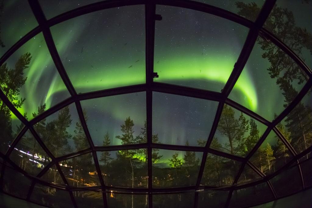 Осень постепенно подходит к концу и мысли все чаще о море и солнце. Но сегодня мы расскажем о месте, где холодно, но поездка туда оставляет самые лучшие впечатления и докажет, каким невероятным бывает отдых на самом северном курорте Лапландии. Заинтригованы? Курорт Саариселькя является излюбленным местом для лыжников. Сезон уже открыт с 20 октября и продлится он по 10 марта. Но речь себя будет не об активном отдыхе. Думаем, что вы видели не раз на просторах интернета стеклянные прозрачные полусферы, в которых находятся большие уютные кровати. Из которой можно наблюдать северное сияние. А ведь это не сказка, а реальный отель Kakslauttanen Arctic Resort - Igloos and Chalets. Да, славится он тем, что предлагает гостям игу из термостекла. Безусловно, чтобы увидеть северное сияние из собственной кровати, необходимо подгадать день. Если вы хочется увидеть это явление, а оно не пройдет над территорией отеля, персонал предложит вам выехать за пределы комплекса. Поэтому не пугайтесь ночной выла