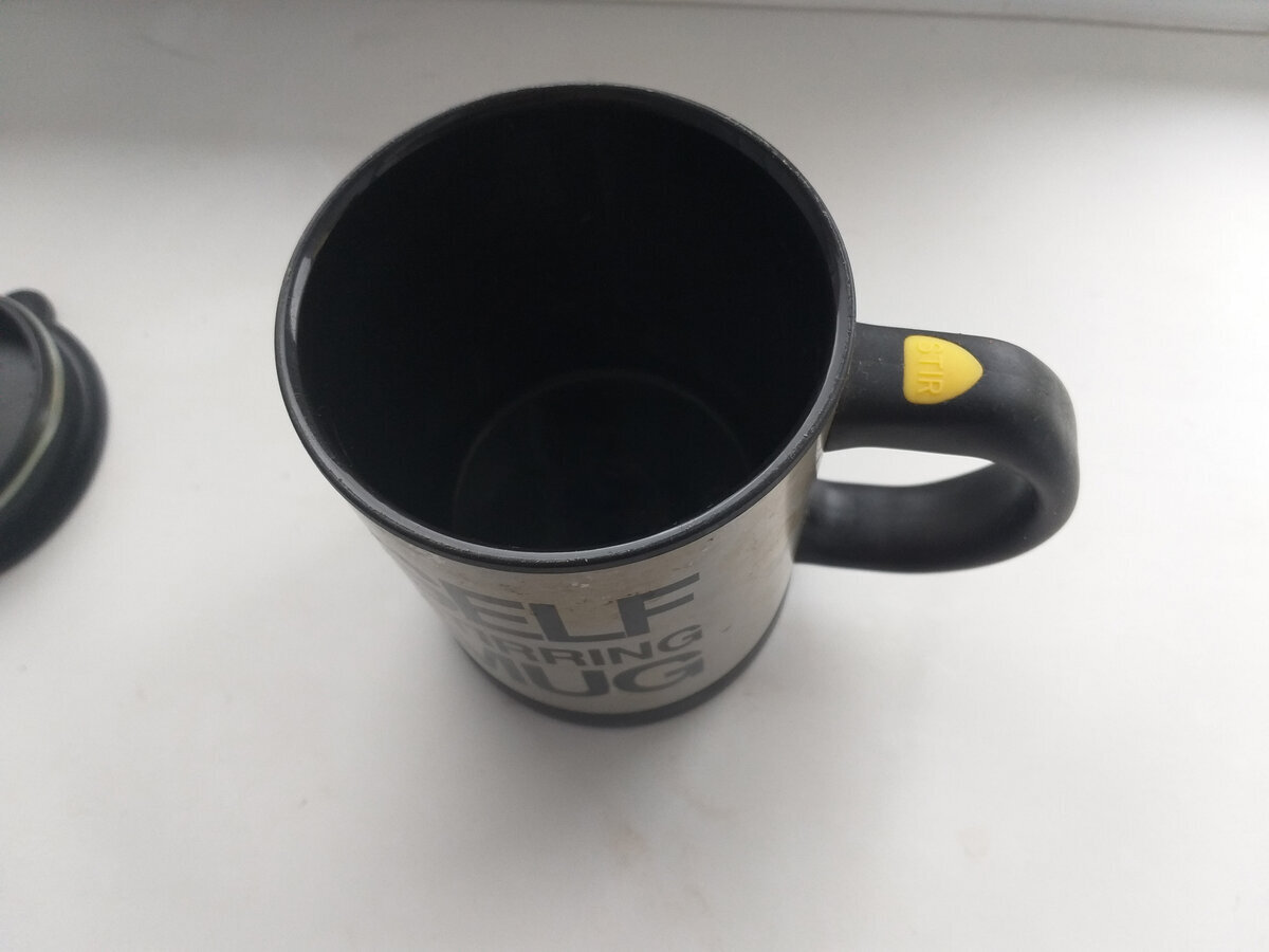 Недавно друг ездил по работе в США, где пробыл 2 недели. По отъезду закупил всем друзьям и родственникам подарков. После приезда заехал ко мне в гости и вручил подарок со словами: "Ты же у нас любитель кофе, вот, специально для тебя кружку купил, там такая сейчас в моде". Поблагодарил, но распаковывать ее сразу не стал, уж очень мне хотелось поговорить и разузнать о поездке, чем заглядывать в обычную, как я думал, кружку. После того как друг ушел, я побежал к коробке с подарком. Вытащил, и вправду модная, друг не соврал. Единственное, тяжелой она мне показалась. На лицевой стороне красовалась надпись: "Self stirring mug", английский я знаю не особо, вернее не знаю совсем, поэтому посчитал эту надпись очередным мотивационным слоганом. В глаза сразу бросилась какая-та желтая кнопка. Нажал, ничего не произошло. Хмм, непонятно... Сначала подумал, что это для поддержания теплой температуры, чтобы кофе не остывало. Проверил снова — да вроде не работает, не греет ничего. Потом, наконец, дод