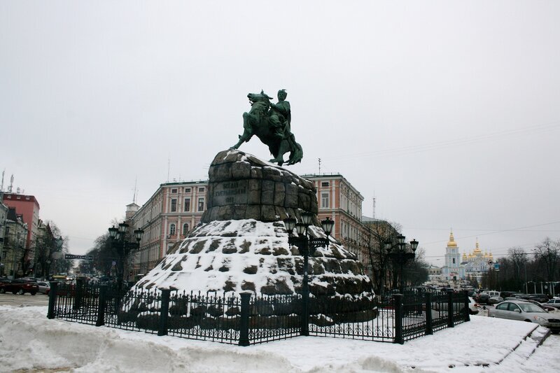 В каждом городе есть место, где у меня возникает ощущение центра. Неважно там ли он фактически находится или нет. Я не имею в виду центр, как мы обычно его представляем. То есть толпа народа, 100500 магазинов и полчища туристов. Для меня центр и если так можно выразиться пульс города прощупывается, как правило, в других местах. Хотя нельзя сказать, что в Киеве в районе памятника Хмельницкому нет туристов или толп народа. Еще как есть. К Хмельницкому мы вернемся чуть позже, а начнем с Софийского собора.