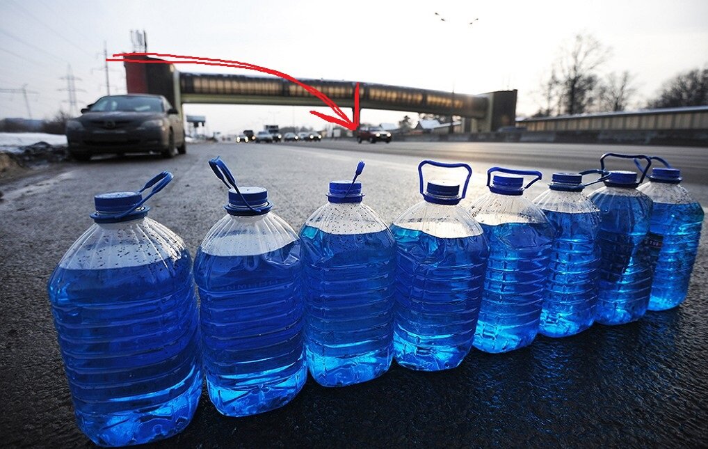 Сейчас, я расскажу Вам хитрый способ, как выехать из сугроба или заледеневшего парковочного места с помощью омывайки! Как известно, если забуксовал зимой и автомобиль не может сдвинуться с места, а попытки выехать в "раскачку" не помогли - необходимо расчистить перед колесами автомобиля небольшую часть для так называемого"разгона". Если есть помимо омывайки еще и лопата, то для начала, разумеется необходимо расчистить небольшую колею с помощью лопаты. Затем, если не удалось выехать, а колеса автомобиля уже докопались до льда - тут нам и поможет омывайка. Её необходимо разлить вокруг всех четырех колес, создав тем самым небольшую площадь зацепа. Важно помнить, что для этого подходит только достаточно хорошая и качественная омывайка или же спирт. Если вы разольете вокруг колес воду, вы только усугубите ситуацию. На то, чтобы выбраться из леденого плена, обычно достаточно одной пятилитровой канистры омывайки, разлитой под колеса автомобиля. Но лучше, не попадать в такие ситуации, и возить