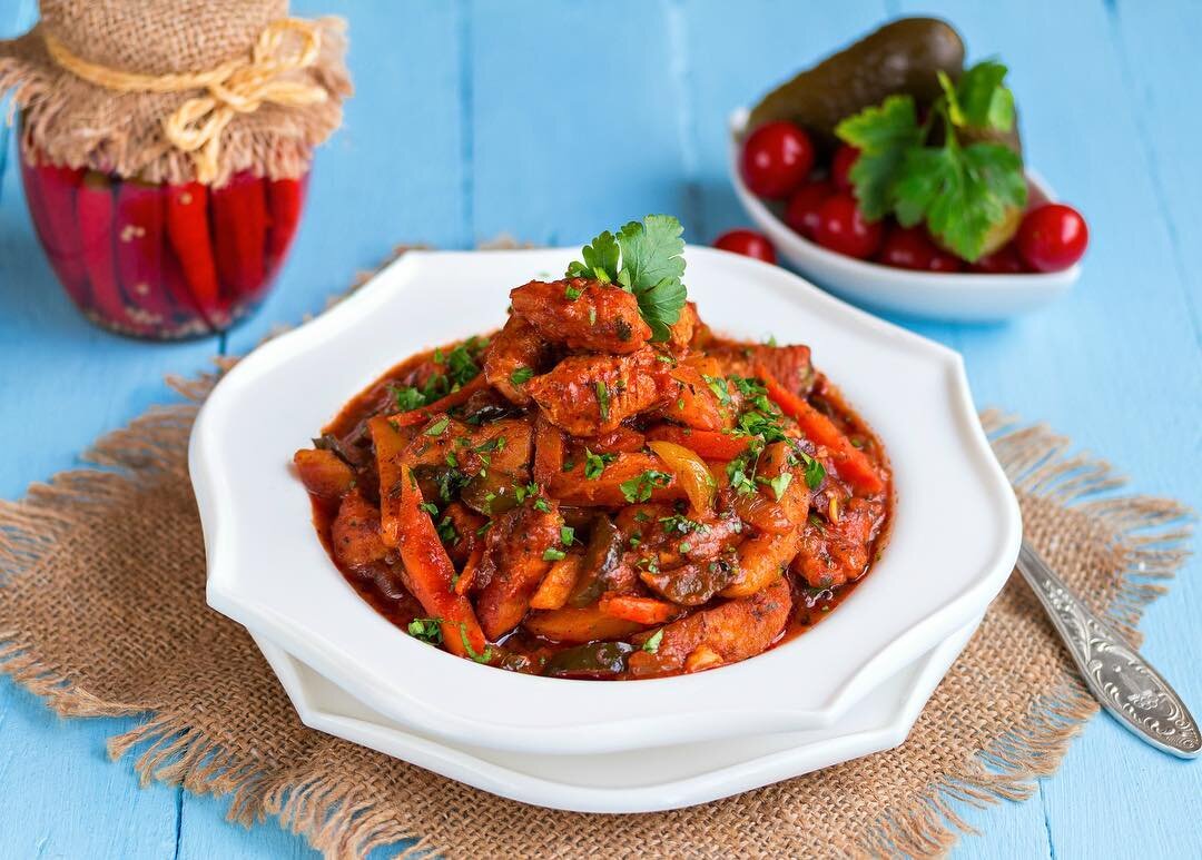 Такое горячее подавалось в каждой столовой или кафе и даже в ресторанах, его часто готовили наши мамы и бабушки на праздники. Вспомним? Ингредиенты: 400 -500 гр. говядины 2 соленых огурца 1 зубчик чеснока 1 головка репчатого лука 5 шт. горошин черного перца 2 лавровых листа 2 ст. л. томатной пасты соль растительное масло Приготовление: 1. Нарезать мясо средней соломкой или брусочками. Можно кубиками или кусочками - как вам больше нравится и удобнее. 2. Разогреть в казане или сковороде растительное масло и слегка обжарить говядину. 3. Нарезать лук тонкими полукольцами, выложить в казан и обжаривать вместе с мясом до мягкости лука. 4. Затем добавить томатную пасту, перемешать и прикрыть крышкой. 5. Огурцы натереть на терке или мелко нарезать. 6. Переложить огурцы к мясу, снова перемешать. 7. Далее долить немного воды или бульона, продолжить тушение под крышкой до готовности мяса. 8. Готовое блюдо посолить, поперчить, бросить лавровый лист и пропущенный через пресс чеснок. Прогреть еще