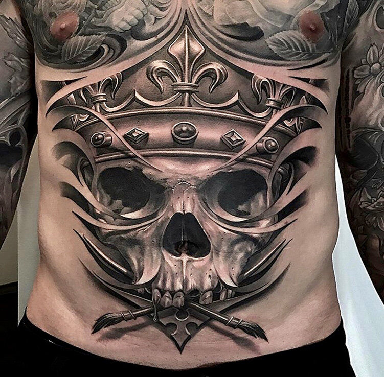 Анатомия Тату № 1 в рейтинге Москвы - https://lacutetattoo.ru/ Более 800 отзывов на Яндекс картах - https://yandex.ru/maps/org/anatomiya_tattoo_piercing Сделать татуировку на красивом и подтянутом животе всегда привлекательно и стильно. Конечно, далеко не каждый может похвастаться идеальной фигурой, но это не повод отказываться от оригинальных мужских татуировок на животе. В нашей статье вы сможете найти не только интересные сведения о данном виде нательных рисунков, но и уникальные фото мужских тату на животе, которые являются реальными примерами работы наших тату мастеров. Татуировки для мужчин на животе можно отнести к категории интимных татуировок. В особенности это касается тех нательных рисунков, которые наносятся внизу живота. Это достаточно удачный вариант для парней, которые хотят разнообразить свою сексуальную жизнь. Более того, некоторые смелые ребята не боятся демонстрировать такие татуировки в теплое время года, надевая короткие майки или футболки. Это отличный способ п