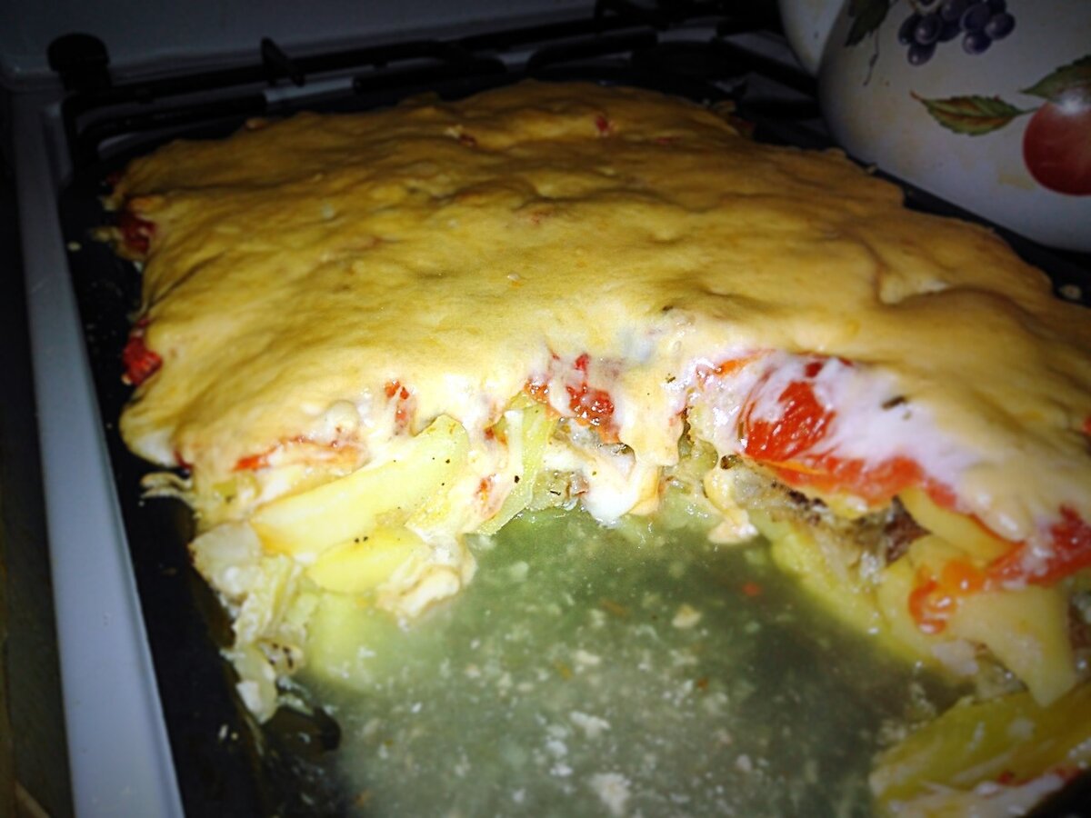 Привет! Сегодня я покажу тебе простой, но при этом очень вкусный рецепт запеченой рыбки. Сразу хочу отметить, что количество продуктов взято условно, не стоит сильно придерживаться их. Если ты любишь побольше рыбы, добавь побольше, если любишь сыр, добавь больше сыра и т. д. Ингредиенты : Филе минтая 650гр. Картофель 8-10шт. Помидор 1 Лук 1 Сыр 250-300гр Майонез Подсолнечное масло Приправы по вкусу Способ приготовления : Я сразу подготавливаю все продукты, а потом уже выкладываю их поочередно. Поэтому: Размораживаем рыбу и режем филе на небольшие кусочки. Чистим лук и картофель. Моем помидор. Трем сыр. Смазываем форму подсолнечным маслом. Картофель режем кружочками и половину выкладываем в форму, а то, что осталось, убираем в сторону. Солим. Филе кладём поверх картофеля. Перчим по вкусу. Лук режем полу кольцами. Выкладываем поверх рыбы. Сверху кладём оставшейся картофель. Солим и добавляем приправы по вкусу. Помидор режем кружочками и кладём на картофель. Всё это у