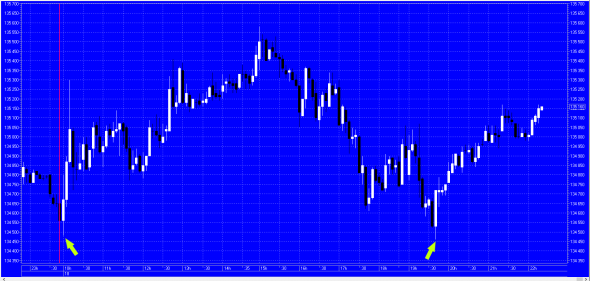 Наблюдаем сегодня: Первая свеча касается уровня 134 480 далее по сценарию улетаем вверх, до 15 часов хорошо растем и касаемся цены 135 580. а что потом? НУ НИКОГДА ТАКОГО НЕ БЫЛО И ВОТ ОПЯТЬ! ))) инструмент такими же рывками улетает вниз до уровня цены в 134 460, после, отскок и вот мы на данный момент крутимся у отметки