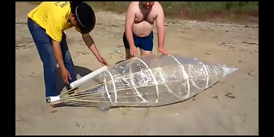 Лодка, палатка. Стреч пленка +пластиковая арматура.