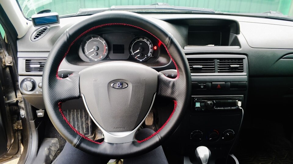 Всем привет🖐️🖐️🖐️, сегодня хочу вам рассказать как я перетянул руль довольно таки качественной оплёткой с сайта AliExpress. Значит оплетку я купил себе с красной строчкой, так как салон у меня делается в машине, чёрная кожа с красной прострочкой. Но у продавца есть не только красная строчка, Так же строгая чёрная, и серая строчка. Кстати заказать себе такую же можно тут Ну для начала разберём что включает в себя посылка: 1.сама оплетка 2.пластиковая лопатка, что бы было удобно заправлять кожу в спицы руля. (так же пригодится в дальнейшем для разбора пластика панели и тд). 3.специальная иголка, и нитка(в нашем случае красная) . 4.двух сторонний скотч(но он мне не пригодился). И так значит натягиваем её на руль, и начинаем шить наш лакшери руль. Я это начал делать от нижней спицы, и пошёл потихому вверх, весь процесс занял где-то 40 минут. Руль стал выглядеть намного дороже, да и крутить его стало намного приятнее, да и не удивительно, крутить деревянный пластик или кожу пускай да