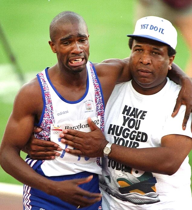 На олимпийских играх 1992 года в Барселоне британский бегун Дерек Редмонд рассматривался в качестве потенциального победителя в забеге на 400 метров. Несмотря на восемь операций, перенесенных за год до Олимпиады, Дерек сумел остаться в форме. Свой полуфинальный забег Дерек начал довольно успешно, но пробежав всего 150 метров, он рухнул из-за разорванного сухожилия. Однако Дерек тут же встал и продолжил забег. На последних 100 метрах к нему из толпы зрителей выбежал его отец - Джим, которого не смогла остановить охрана. Он подбежал к своему сыну и попытался остановить его: «Тебе совсем не обязательно делать это». Однако Дерек ответил наотрез: «Нет, я должен!» «Ну, тогда, сынок, мы сделаем это вместе», - отец обнял сына за плечи, и так вместе они дошли до финала. На стадионе никто, включая видеооператоров, не обращал внимания на победителя и других бегунов. Все взгляды были направлены на отца с сыном, которые медленно преодолевали метр за метром и дошли до финиша.