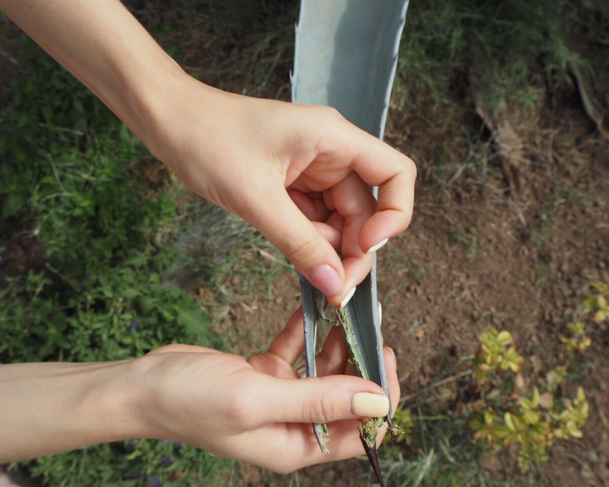 Впервые про шелк из кактуса мы узнали дома в России, когда готовились к первой поездке в Марокко. Найти подушки из такого материала было важной миссией. Каково же было ощущение, когда мы их увидели вживую! Они совсем ни на что не похожи из увиденного ранее. Необычайно богатая, живая текстура самого полотна, ручная вышивка, хлопковый кант и кисточки по углам. Мы привезли себе домой несколько штук и после этого придумали Nomad Chic. Давайте разбираться, что это за растительный шёлк такой, который получают из кактуса. Часто его ещё называют шёлком из агавы, но, как мы выяснили, это не совсем так. Алоэ вера — растение, из которого изготавливается полотно, родом из жаркой и сухой Африки. Оно растет там, где многие другие растения вянут и умирают. Внешне они очень похожи с агавой, поэтому многие путают или просто называют кактусом. Даже в самом Марокко все называют по-разному. Алоэ, помимо всем известной медицинской пользы и применения в косметологии, с давних времён использовался местными ж