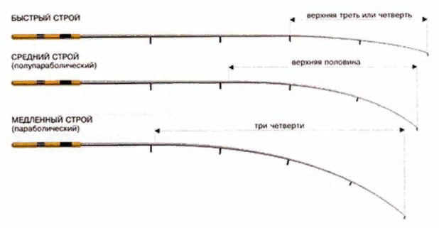 По весу. Сверх легкие, легкие, средние и тяжелые. Их масса соответственно составляет 7, 15, 40 и свыше 40 кг. Длина удилища. Варьируется от 1,3 до 4 м. Степень упругости или строй. Влияет на чувствительность к поклевке. Жесткая рыболовная снасть необходима для ловли хищника, она сгибается только на 1-3 длины....