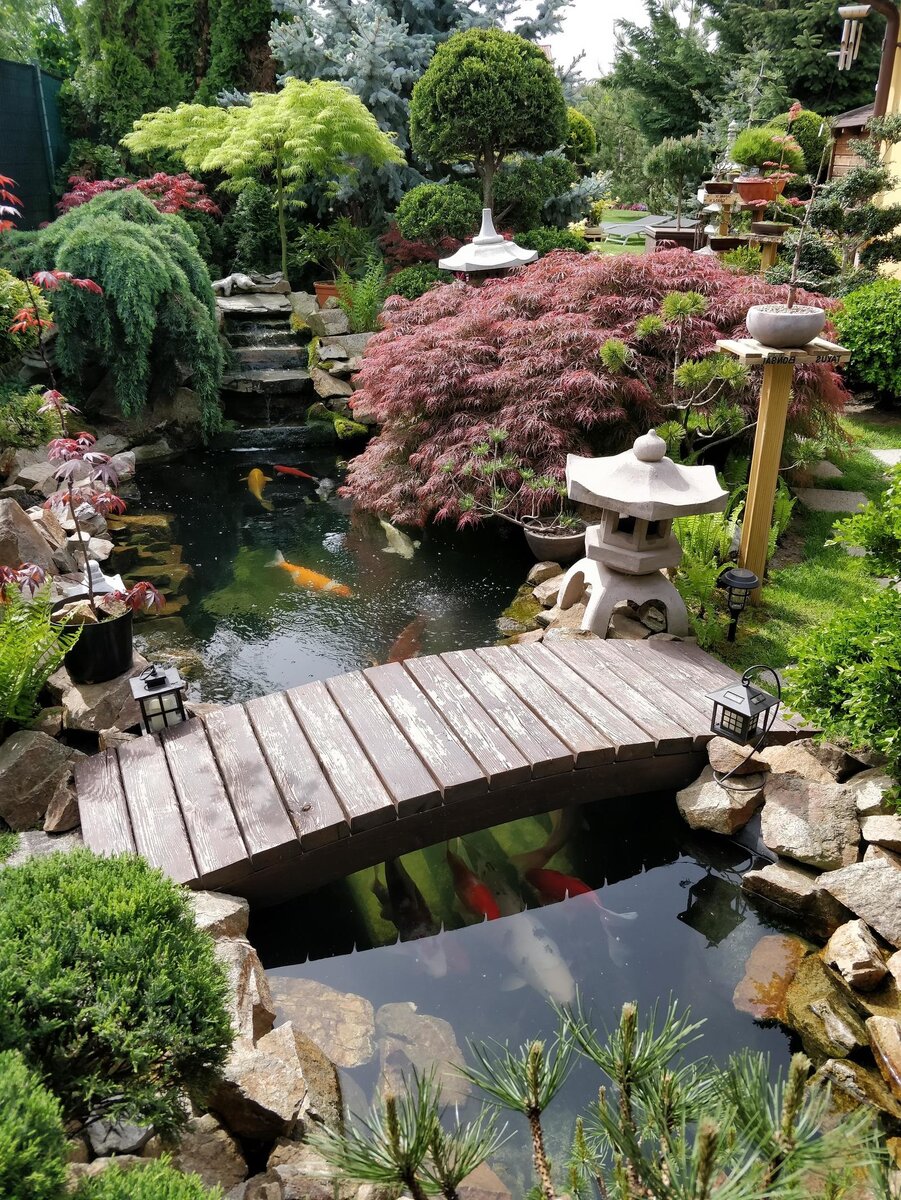 Японские сады приобретают свое очарование, комбинируя различные элементы: Японские сады частично основаны на символах, выражающих буддизм и синтоистские верования. Композиция Японского сада основана на трех основных принципах: уменьшенный масштаб, символизация и дарованные взгляды. САДЫ В УМЕНЬШЕННОМ МАСШТАБЕ они представляют известные сцены и места в маленьких и ограниченных пространствах. Виды гор и рек миниатюрные с камнями, песком и гравием. СИМВОЛИЗАЦИЯ используется почти в каждом японском саду. Погребенный песок или гравий представляет реки, камни символизируют острова. SHAKKEI или предоставить вид, чтобы использовать существующие пейзажи или окрестности, чтобы дополнить сад. Существующий ландшафт становится частью общего дизайна. ЕСТЬ НЕСКОЛЬКО РАЗНЫХ СТИЛЕЙ ЯПОНСКИХ САДОВ KARESANSUI или сад без воды, только камень и песок - хорошо известный тип японского сада. Этот тип сада появился в период Муромати (1333-1568) и находится под сильным влиянием дзен-буддизма. Он также включает