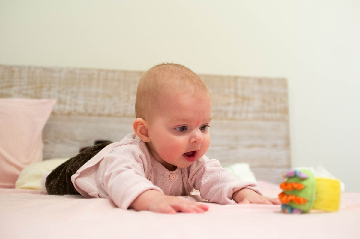 СЕДЬМОЙ МЕСЯЦ Прибавка в весе – 400 г Прибавка в росте – 2-3 см В 7 месяцев малыши уже активно играются с различными игрушками, теребят их, перекладывают из одной руки в другую, берут игрушечки из состояния сидя, быстро ползают. Многие детки в этом месяце произносят отдельные слоги, показывают, где та или иная игрушка, понимают смысл некоторых слов, обращенных к ним. Семимесячный малыш нуждается в личном пространстве, чтобы ничего не мешало ползать, играться. Он может стоять, если его держать под мышки, полностью разогнув ножки и упираться всей ступней. Прогулки на свежем воздухе должны быть по-прежнему ежедневными. Теперь ребенок меньше спит во время прогулки, а активно познает мир. Он может внимательно изучать местность, сидя в коляске.
