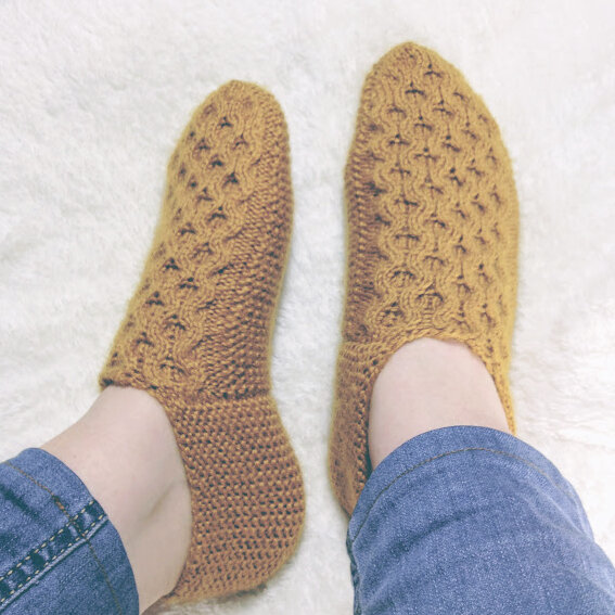 Убавки выполняются вдоль изнаночных петель, отделяющих декоративный узор "Соты". Первые восемь рядов мыска убавки выполняются через ряд, далее - в каждом ряду.