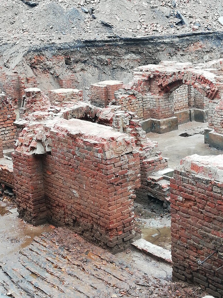 Во дворах общежития СПбГАСУ на углу Фонтанки и Вознесенского проспекта раскопали Ново-Александровский рынок XIX века. Руины, скрытые под землей, обнаружили археологи РАН при разведке для строительства студенческого спорткомплекса.