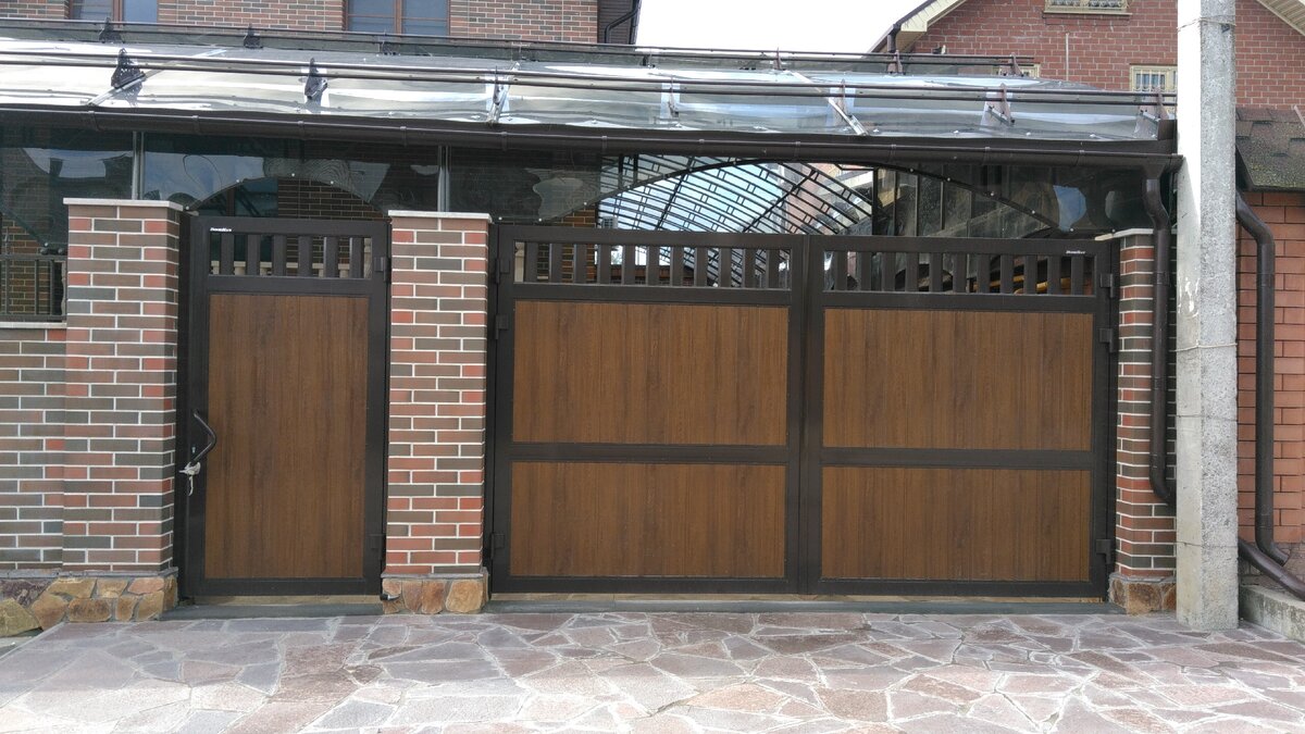 РАСПАШНЫЕ ВОРОТА В АЛЮМИНИЕВОЙ РАМЕ С ЗАПОЛНЕНИЕМ СЭНДВИЧ-ПАНЕЛЯМИ