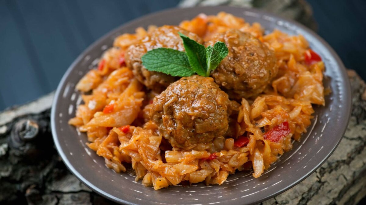 На 4 порции вам понадобится: 1. Тонко нашинкуйте капусту, морковь и лук. 2. Поставьте толстостенную кастрюлю на слабый огонь, плесните масла. Порубите бекон, высыпьте его в кастрюлю и обжарьте перемешивая, минуту. 3. Добавьте фрикадельки и обжаривайте вместе с беконом еще 5 минут. Затем выложите это все в глубокую миску. 4. В кастрюлю, прямо в оставшийся от мяса жир, закиньте морковь и лук. Обжаривайте, помешивая, 3 минуты. 5. Добавьте к овощам капусту, сюда же влейте томатный соус. Приправьте солью, перцем, закиньте розмарин, а затем влейте стакан воды. Поставьте на средний огонь, накройте крышкой, пусть потомится 10 минут. 6.Добавьте к овощам фрикадельки с беконом, оставьте еще на 10 минут 7.Добавьте чеснок и зелень, подавайте на стол. Как приготовить фрикадельки, смотрите на моем канале)
