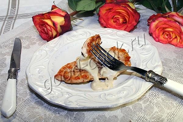 Мягкое солоноватое куриное филе с красивой румяной корочкой и бархатистый ароматный соус - прекрасное сочетание. СОСТАВ 500г куриного филе,