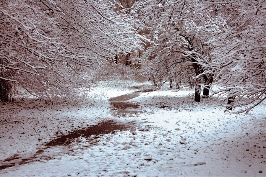 Под вечер снег. Земли коснулсяПушистый, белый, первый снег.Щебечут птицы. Встрепенулся в моей душе незримый свет.