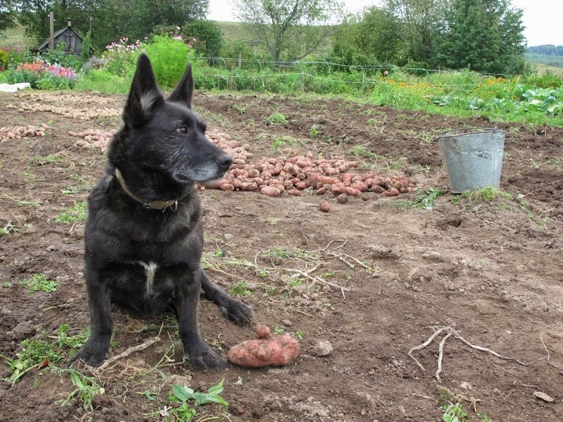 Картошка нынче так себе. Посадили мало и выросла плохая, несмотря на дождливую погоду. Родители почему-то решили, что навоз это плохо, от него сорняки растут, и с 2011 года почву не дают удобрять. Собрали всего 530 кг, а в начале 90-х до 2-х тонн выходило.