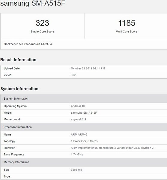 Смартфон Samsung Galaxy A50 был представлен в феврале 2019 года, в августе вышла его улучшенная версия Samsung Galaxy A50s, а сейчас в бенчмарке Geekbench появились результаты тестирования смартфона Samsung Galaxy A51 с модельным номером SM-A515F. Изначально ожидалось, что новинка работает на базе однокристальной системы Exynos 9630, однако, судя по информации, полученной с помощью бенчмарка, в Samsung Galaxy A51 трудится SoC Exynos 9611. Именно этот чипсет установлен в Samsung Galaxy A50s. Среди других характеристик указан объем оперативной памяти - 4 ГБ, в качестве операционной системы выступает Android 10 с графической оболочкой One UI 2.0. Объем встроенного накопителя не фигурирует в бенчмарке GeekBench, но, по слухам, пользователь сможет выбрать между 64 и 128 ГБ. Ожидаем большего количества информации о смартфоне Samsung Galaxy A51 в ближайшее время.