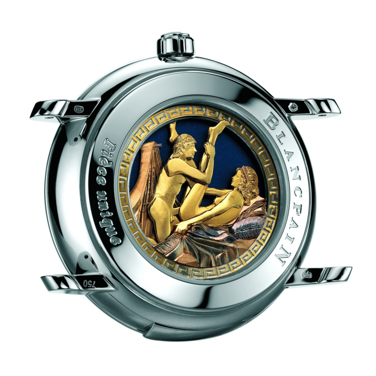 Эротические часы невозможно поставить на поток. То, что нравится одному, не годится другому. Одинаковые модели с любовниками в разных позах продаются на аукционах за совершенно разные деньги. Но всегда за такие, за которые о вкусах не спорят. BLANCPAIN не зря снабжает свои эротические часы надписями, каждая сцена единственная в своем роде.