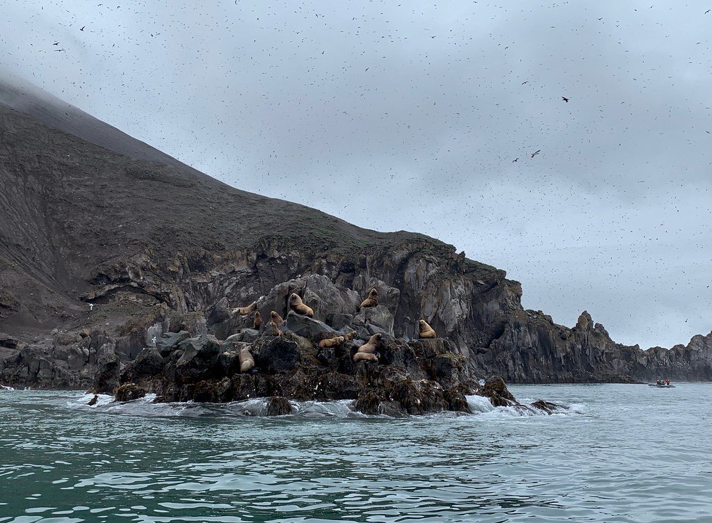 Если верить википедии, то, несмотря на очень скромные размеры - всего 2 километра в диаметре - в 2000-х годах здесь обитало 15% всей популяции курильских сивучей. И тысячи птиц.