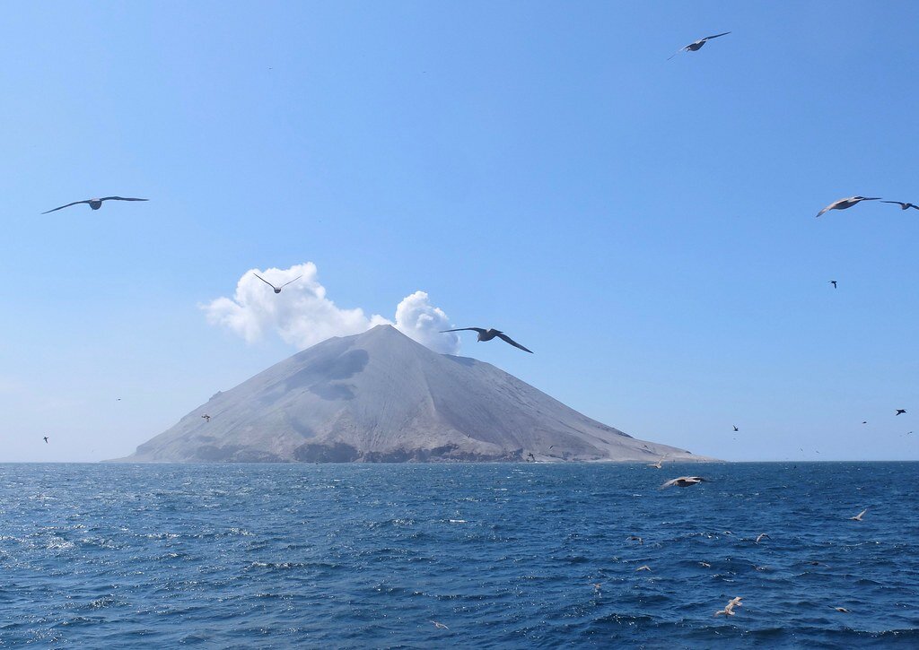 Было непонятно, почему все эти тысячи птиц кружатся в воздухе, сидят на воде, но упорно не хотят вернуться на склоны своего родного вулкана.