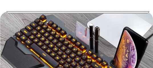 Игровая механическая клавиатура проводная эргономичная клавиатура с rgb-подсветкой, с приобретением этой клавиатуры вы поднимите свой скил до высшего уровня, так же данная клавиатура может служить как подставка для телефона и ручек для большего удобства и эргономичного вида, успей купить всего за 1500 р!!!