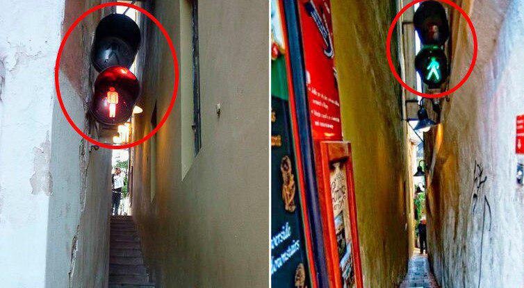 В Праге есть улица,где ширина между домами составляет всего 70 см. А знали ли Вы,что... В Праге есть очень узкая улочка между домами шириной всего 70 см, в которой трудно разминуться даже двум людям. Поэтому здесь установили светофор, который регулирует движение пешеходов, идущих с разных концов улочки. Улочка была названа в честь винодельни «Чертовка» и стала своего рода рекламой этого заведения: она приводит туристов на террасу ресторана, расположенного в тупике. Так что пройти мимо просто невозможно!