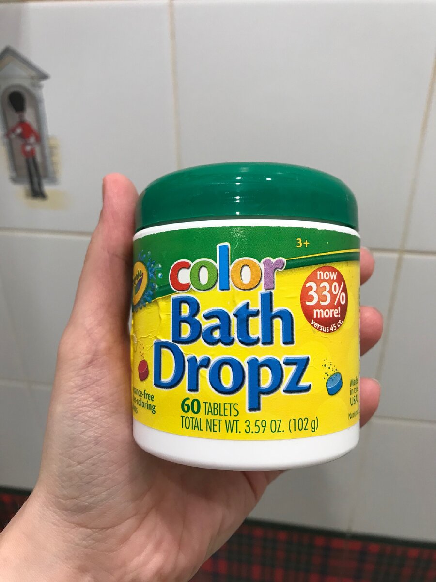 Меня продолжает тянуть на всякие эксперименты, а так как ребенок подрастает и с ним становится все интереснее, то очередь дошла и до игрушек. Недавно в разделе "Детское" на Айхербе нашла вот такие таблетки для купания (известная фирма Crayola): Они окрашивают воду в разные цвета, в наборе три: желтый, синий и красный. Но вся суть в том, что их можно смешивать, таким образом получатся новые три комбинации: зеленый, оранжевый и фиолетовый. Таблетки гипоаллергенные, по виду и составу напоминают бомбочки для ванн (да и в составе минимум ингредиентов, видно на фото). Нужно обязательно следить, чтобы ребенок не проглотил таблетки случайно и не нырял в воду, так как может быть индивидуальная непереносимость или вода в глаза попадет. После водных процедур в такой воде мы моем сына под душем с нашим обычным детским мылом, на ванне следов никаких не остается. Сын сначала с опаской смотрел на эти шипучки в воде и не сразу понял, что произошло. Но когда понял, радости не было предела, ведь на его