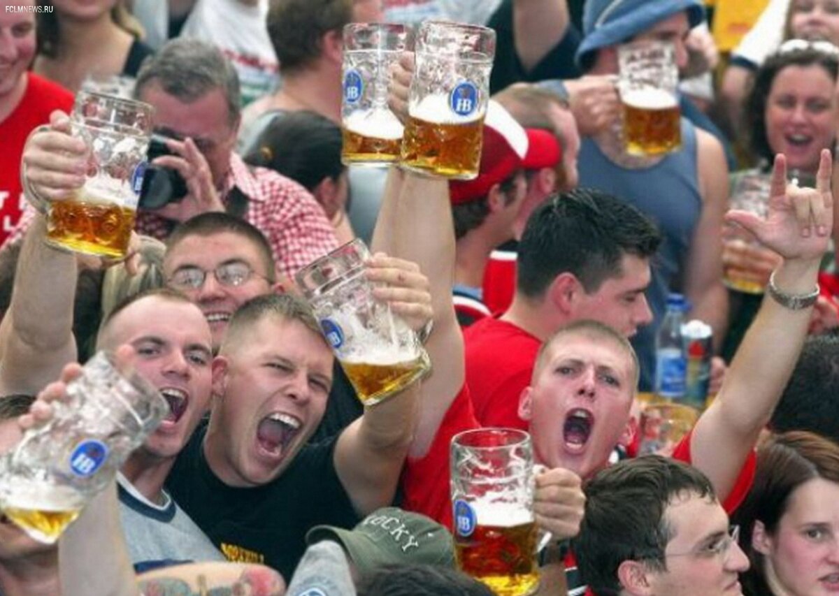 Спорт, пиво, табу В не очень далекие времена был введен запрет на продажу алкогольных напитков на стадионах. И много-много лет тысячи болельщиков перед матчем накачивались в местных барах, чтобы попытаться получить удовольствие и расслабление от алкоголя, и от просмотра матча. Редкий болельщик доползал после бара до стадиона. Более хитроумные болельщики протаскивали через кордоны стадионов алкоголь в резиновых грелках, в презервативах и прочее. Были особо одаренные, которые покупали пластмассовые стаканы с крышкой в виде объективов фотоаппарата. В такую емкость умещалось 350 гр. крепкого алкоголя. Если с грелками разобрались быстро, то «объективы» до сих пор пользуются успехом. В безумстве борьбы за трезвого мужика на стадионе, мотивируя, что именно пьяный болельщик провоцирует беспорядки, власти в пылу борьбы запретили и закрывали перед матчем все местные пабы и рестораны в радиусе 3 км от стадиона. В таких жесточайших условиях редкий мужик решался пойти на стадион. Что там делать т