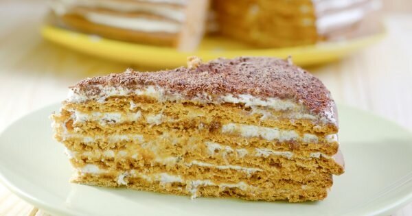 С помощью скалки перенеси корж на противень, застеленный пергаментной бумагой, и выпекай при температуре 180 градусов до румяной корочки. Это примерно 15 минут на один корж. Готовые коржи оставь остывать.