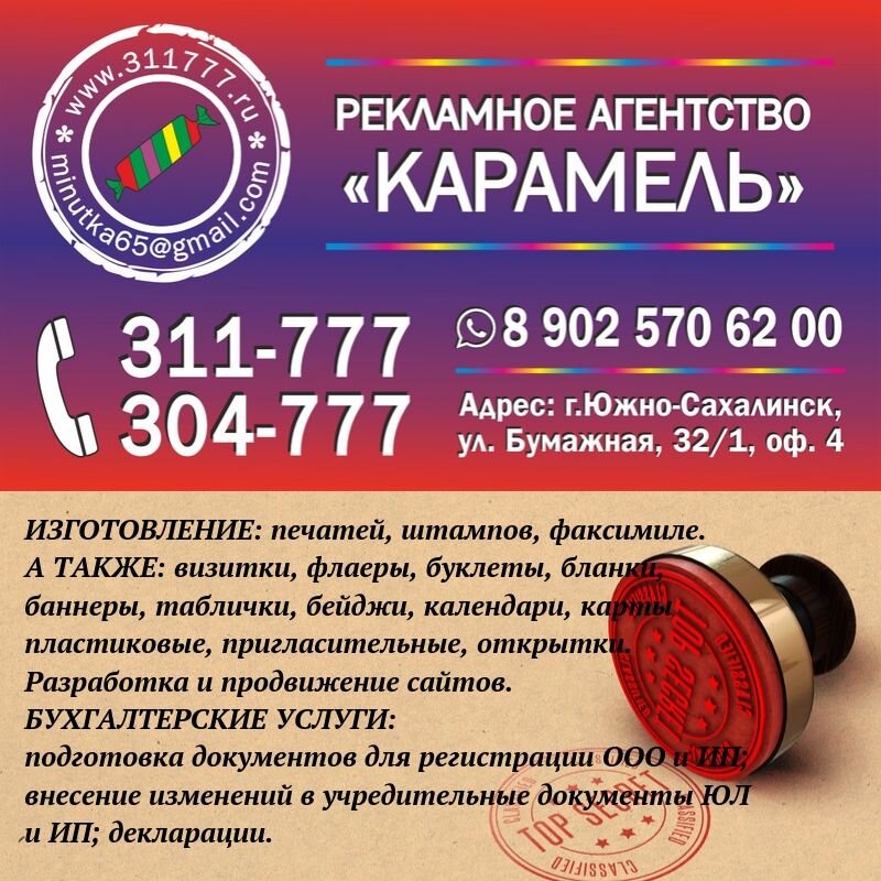 ПЕЧАТИ И ШТАМПЫ В ЮЖНО-САХАЛИНСКЕ