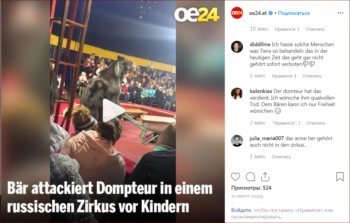 Не собиралась сегодня писать статью, но не могу молчать! Сегодня вся наша Республика Карелия обсуждает одно происшествие, во всех новостях пишут только о том, что вчера во время выступления передвижного цирка-шапито в городе Олонец (Республика Карелия) медведь напал на дрессировщика! Да что там Карелия, вся страна уже обсуждает. И даже в иностранном Инстаграме появилась эта новость. Видео происшествия выложила в сеть одна из зрительниц. Если вы захотите, легко сможете его найти. Медведь почему-то обиделся на дрессировщика во время номера «Косолапый и садовая тачка» и накинулся на него. Помощник пытался отогнать зверя от артиста. Сначала простыми пинками под зад, потом применил специальное средство усмирения. Что самое печальное в этой истории: 1) Арена цирка не была огорожена. По периметру не стояли ассистенты, как это положено правилами безопасности. Зрители с маленькими детьми на руках сидели в метре от дикого зверя. Большого зверя. Огромного, я бы сказала - его размеры и силища впо