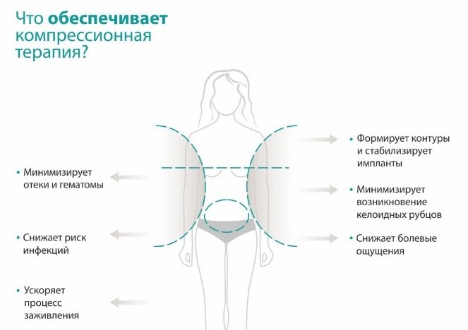 Так же компрессионное белье может заменить лимфодренаж и массажиста. Это необходимо для послеоперационной зоны в связи с тем, что нужно восстановить кровеносный и липидный ток, а так же обмен белков. Микроповреждение заживут тем скорее, чем быстрее пойдут обменные процессы, которые обеспечат снабжение кожи коллагеном, создадут упругость кожи и придадут тонус мышцам.