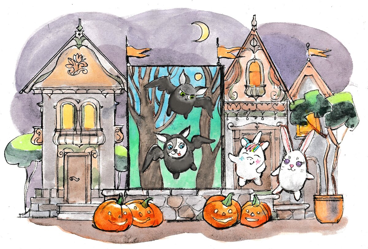 Сомневаетесь, что сможете красиво нарисовать скелет? Сделайте трафарет из бумаги, прикрепите его к ткани и заполните прорези пастой или краской. Идея №3. Милая летучая мышка или самый простой и практичный вариант Что нужно: Что делаем: Полезный лайфхак: