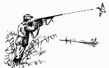 Стрельба с поводкой. Вскидка ружья производится позади летящей цели, мушка ружья повторяет траекторию цели и постепенно совмещается с планкой. Это совмещение стрелок выполняет движением корпуса, приклад уже поставлен в плечо. В момент обгона цели мушка правильно совмещена с планкой, при этом выбирается нужное упреждение и без остановки движения ружья охотник нажимает на спусковой крючок. Казалось бы, все просто, но именно при этом способе стрельбы делаются грубые ошибки. Запомните их: 60 % стрелков в момент нажатия на спуск останавливают движение ружья по траектории, 40 % охотников стволами закрывают цель и рефлекторно тормозят движение ружья в момент нажатия на спуск, 70 % — не могут вначале освоить плавной поводки и рывками перегоняют цель — «бросают» ружье. Это особенно вредная привычка, от которой трудно избавиться. Многие охотники помимо указанных ошибок не справляются с темпом поводки ружья и в результате выбирают недостаточное упреждение. Следует заметить, в старой литературе отечественные стрелки иногда рекомендовали «выбрасывать» ружье впереди цели, что в настоящее время в спортивной практике считается недопустимым. Хочу обратить внимание, что на английском языке стрельба с поводкой буквально переводится «вскидка через цель». Но как обучить новичка этой технике стрельбы? Оказывается, просто. На Западе новичок и опытный охотник имеют карманные фонари с узким и ярким пучком света. Тренировка происходит в вечернее время суток или в темном помещении. Тренер обозначает светлое пятно и ведет его по стене здания, ученик перегоняет это пятно своим лучом света и в момент воображаемого нажатия на спуск дает звуковой сигнал «так». Тренировка усложняется, когда фонарь ученика крепится на ствол ружья. Делается это для отработки плавности поводки, так как траектория движения ствола у новичка напоминает волнистую линию. Этот простой и эффективный способ тренировки практически неизвестен широкому кругу наших охотников. Разумеется, в развитых странах появились лазерные тиры и стенды для тренировок охотников и полисменов. Полиция использует охотничьи автоматы 20-го калибра для задержания опасных преступников в городских условиях, но принципы тренировок одни и те же. Тренер формирует в голове стрелка программу стрельбы с поводкой, которая реализуется затем автоматически в любых условиях. Такой метод наиболее прогрессивный.