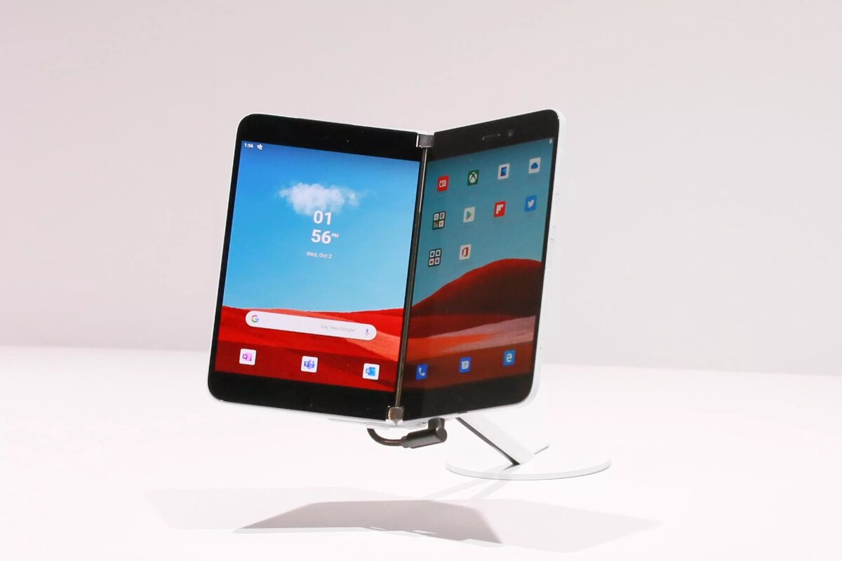 [Источник] В начале этого месяца на мероприятии в Нью-Йорке Microsoft представила складной смартфон с двумя дисплеями Surface Duo. Учитывая, что предыдущие устройства корпорации работали под управлением Windows Mobile, поддержка которой закончится 10 декабря, Microsoft пришлось оперативно искать ей замену. В качестве спасителя был выбран один из главных конкурентов Microsoft — компания Google с её мобильной операционной системой Android. «Android — лучшая операционная система для этого продукта. Хотя Microsoft отказалась от разработки собственной мобильной операционной системы, мы всё ещё хотим стать частью стремительно развивающейся индустрии смартфонов», — объясняет свой выбор директор по разработке новых продуктов аппаратного подразделения Microsoft Панос Панай. Помимо Android смартфон Surface Duo будет оснащён двумя 5,6-дюймовыми экранами, соединёнными между собой шарнирным механизмом; производительным 8-ядерным процессором Qualcomm Snapdragon 855; сканером отпечатков пальцев и дру