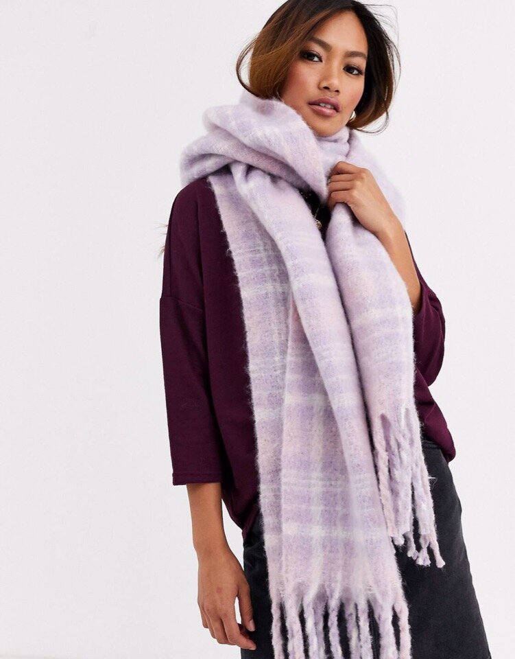 Самый уютный и практичный тренд — объемные шарфы, которые немного напоминают плед. Боитесь сильного ветра или зимних морозов? Тогда вам точно не обойтись без гигантского шарфа, в который можно легко закутаться с головой. Самые модные варианты - однотонные модели спокойных оттенков.