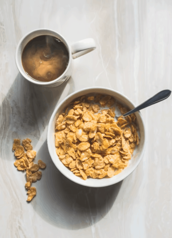 Хлопья – это отличный быстрый завтрак. Это просто, удобно. Однако эта еда является обработанной и там есть добавленный сахар. Поэтому очень важно читать состав. Полчашки хлопьев могут содержать примерно 14 г добавленного сахара, а это 60% нашего ежедневного лимита.