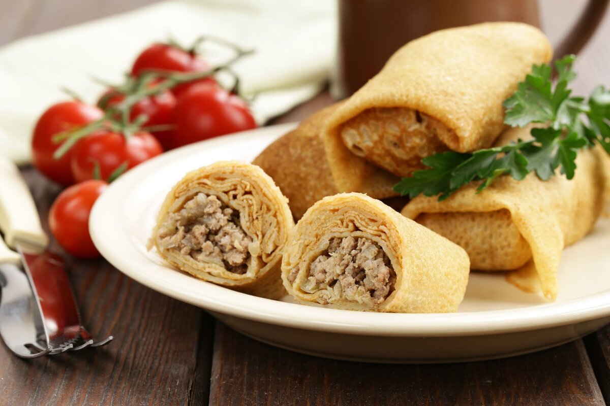 Выложить на блинчики начинку и свернуть рулетами. - Оставшиеся яйца взбить с молоком. Обмакнуть в смесь блинчики, обвалять в сухарях и обжарить до золотистого цвета.