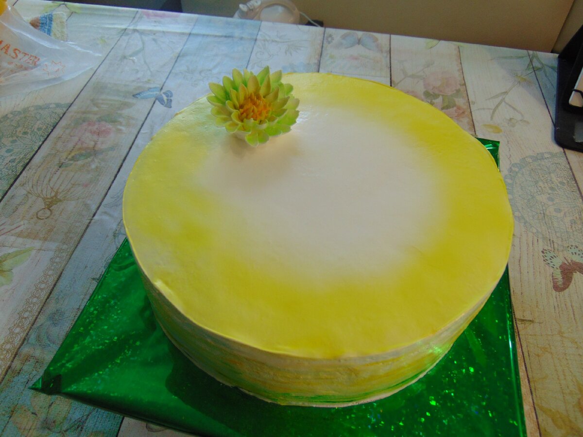 Здравствуйте, совсем не было свободного времени на написание статьи, но вот выдался свободный вечер и решила немного рассказать и показать один из тортов. Украшала в этот раз цветами - хризантемы и розы, торт был подарком на день рождения. Вот с такого "холста" начинаем украшать (не успела сфотографировать без хризантемы). Далее размещаю хризантемы и розы, решила использовать яркие краски, их так не хватает осенью. Далее, несколько штрихов кисточкой и начинаю добавлять зеленые листочки, завершая украшение. Жду ваших оценок, всем пока, до скорых встреч.