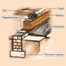 Для защиты от капиллярной влаги в месте соприкосновения кирпичной кладки с бетоном по всему сечению наружных и внутренних стен при гидроизоляции фундамента прокладывается гидроизоляционный слой из рулонных материалов (например, из двух слоев гидростеклоизола на битумной мастике). , а дом имеет подвал, то такой слой гидроизоляции нужно проложить на уровне пола подвала.