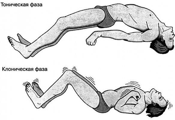 Эпилептический припадок просто распознать, зная его стадии проявления. Внешне большой генерализованный припадок начинается с тонических судорог: пациент теряет сознание и падает на поверхность. Во время падения можно услышать специфический крик: спазмируются голосовые щели, из-за чего воздух проходит через узкое пространство и образуется звук высокого тона.