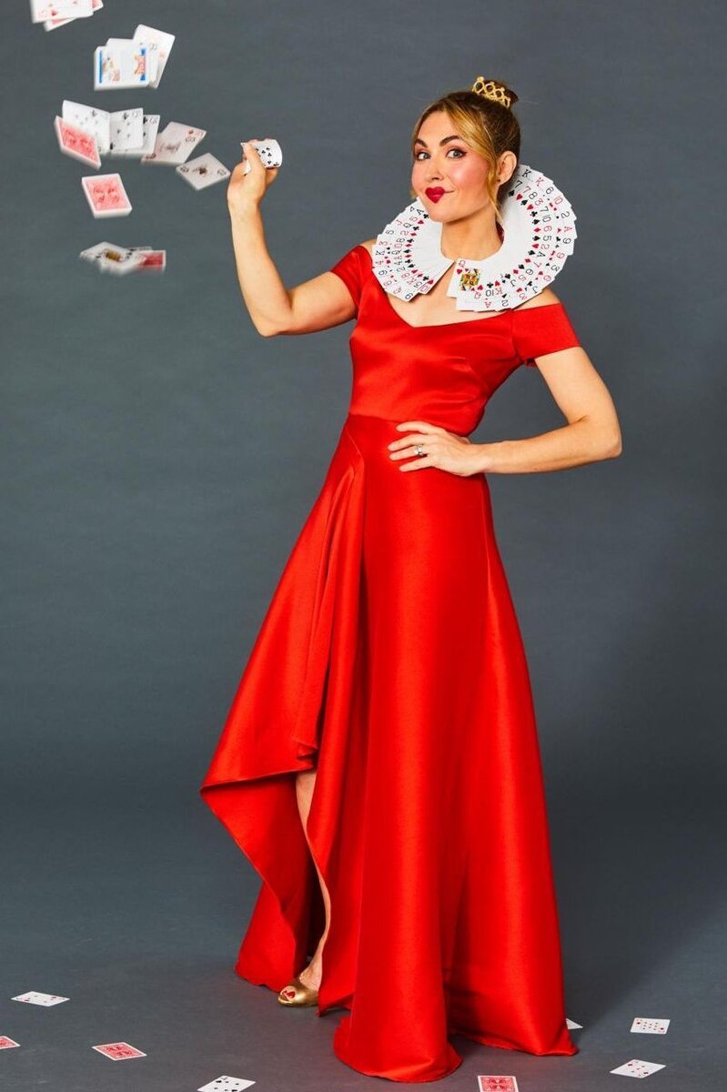 1. Карточная дама Для этого костюма понадобятся только игральные карты и чёрное либо красное платье. Смотря какой масти вы хотите быть ;) Такой воротник сделать будет очень легко: возьмите колоду карт и склейте или скрепите степлером карты по кругу. Чтобы он грациозно стоял, прикрепите его невидимками к вашим волосам с зади. Осталось нанести соответствующий макияж и вуа-ля! Ваш костюм готов. 2. Ананас Если у вас есть жёлтое платье, то вы можете нарядиться ананасиком. Просто нужно в дополнение к платью сделать зелёную верхушку ананаса из картона или фетра. Прикрепить к волосам и можно идти праздновать! 3. Кактус Для любительниц зеленого тоже найдётся свой костюм. Для него потребуются только белые нитки и иголка! Пришейте пучки белых ниток вразброс к платью и вот вы уже готовы идти на костюмированную вечеринку. Если у вас заколки с яркими цветочками, они будут прекрасным дополнением к костюму. 4. Raining man It's raining men