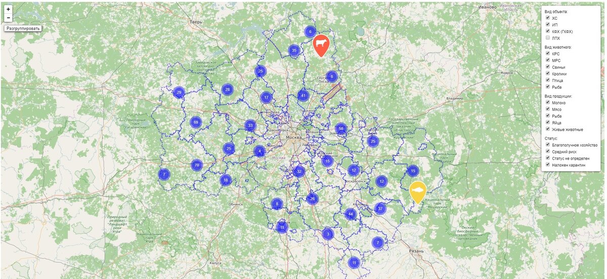 В Московской области заработала интерактивная карта «Здоровая ферма». С её помощью можно получить подробную информацию по сельхозпроизводителям столичного региона. «Интерактивная карта позволяет любому человеку узнать об объектах по содержанию и разведению животных, понять, какие предприятия, крестьянско-фермерские и личные подсобные хозяйства Подмосковья производят и выпускают качественную, экологически чистую и безопасную продукцию растениеводства и животноводства, - сообщил министр сельского хозяйства и продовольствия Московской области Андрей Разин. - Здесь можно найти информацию о почти 200 фермерских и 9 тысячах личных подсобных хозяйствах. На карте отображены такие параметры как название и адреса предприятия, каким видом деятельности оно занимается, что производит». Интерактивная карта создана ветеринарной службой Министерства сельского хозяйства и продовольствия Московской области. Ко всему прочему, она позволяет увидеть ветеринарное благополучие каждого объекта. Благополучн