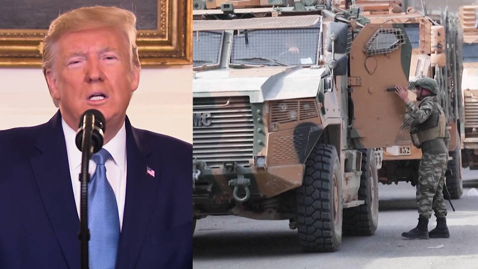 Президент Трамп заявил в среду, что в отношении Турции будут сняты санкции, поскольку в северной части Сирии сохраняется режим прекращения огня. Турция вторглась в регион в начале этого месяца после того, как Трамп отозвал поддержку США сирийским курдам, которые помогли США бороться с ИГИЛ . В этой кампании погибло более 11 000 курдов. Хотя президент Трамп пообещал вывести американские войска из Сирии, он признал в среду, что некоторые американские войска останутся для охраны нефтяных месторождений. Президент Дональд Трамп : «В районе, где у них есть нефть, останется очень небольшое количество американских войск, и мы будем его защищать, и мы будем решать, что мы будем делать с ним в будущее. ... Пусть кто-нибудь еще сражается за этот длинный окровавленный песок. Российские и турецкие силы договорились о совместном патрулировании вдоль сирийско-турецкой границы после того, как президенты Эрдоган и Путин встретились во вторник в Сочи, Россия, и договорились о плане, который заставит си