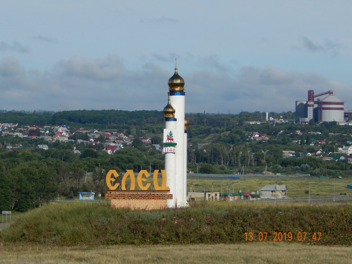Yelets – так дорожники указывают название Ельца на дорожных указателях трассы М4 «Дон» на английском языке. Иногда встречается просто Elets. Как правильно, я не знаю, не полиглот. При въезде в Елец по старой трассе можно увидеть стелу города с трёмя куполами.
